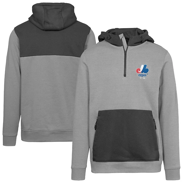 Women's Levelwear Gray Montreal Expos Cooperstown Collection Chicane Core Logo Quarter-Zip Pullover Hoodie
