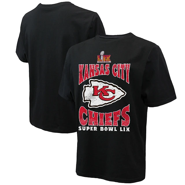 Men's Majestic Threads Black Kansas City Chiefs Super Bowl LIX Heavyweight T-Shirt