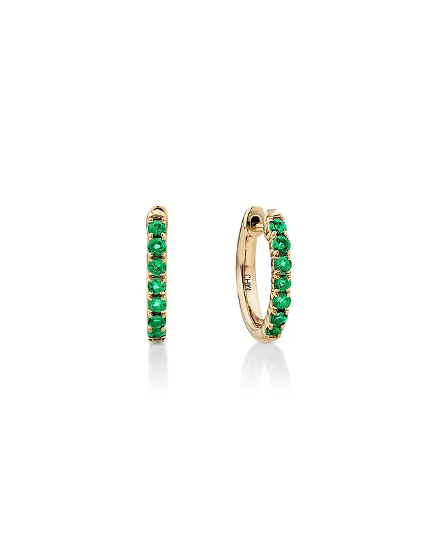 Diamond Star Accent Signet Huggie Hoop Earrings in 10kt Yellow Gold
