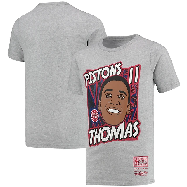Youth Mitchell & Ness Isiah Thomas Gray Detroit Pistons Hardwood Classics King of the Court Player T-Shirt