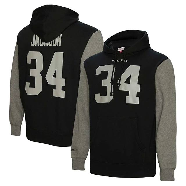 Men's Mitchell & Ness Bo Jackson Black Las Vegas Raiders Retired Player Name Number Pullover Hoodie