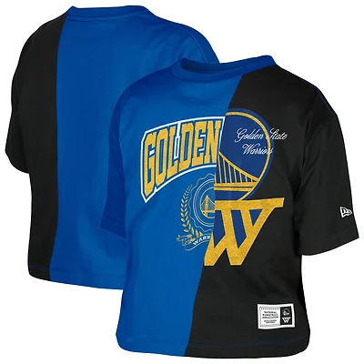 Women's New Era Blue Golden State Warriors Upcycled Colorblocked Boxy Cropped T-Shirt