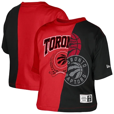 Women's New Era Black Toronto Raptors Upcycled Colorblocked Boxy Cropped T-Shirt