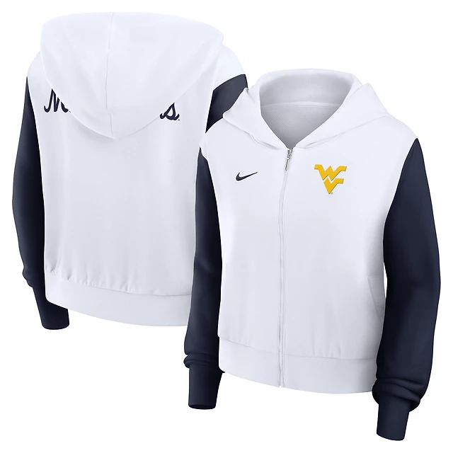 Women's Nike White West Virginia Mountaineers Cropped Beyond Capability Color-Block Script Full-Zip Hoodie