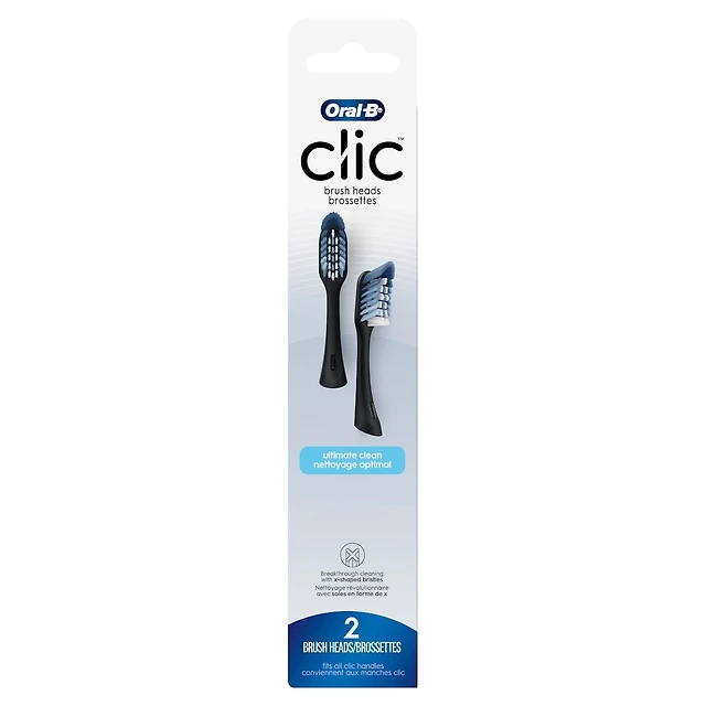 Clic Toothbrush Ultimate Clean Replacement Brush Heads, Black, 2 Count