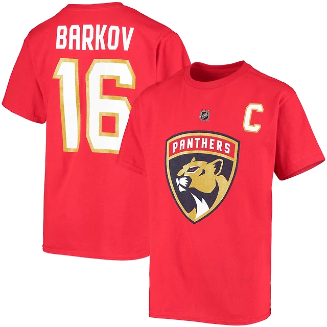 Youth Aleksander Barkov Red Florida Panthers Player Name & Number T-Shirt