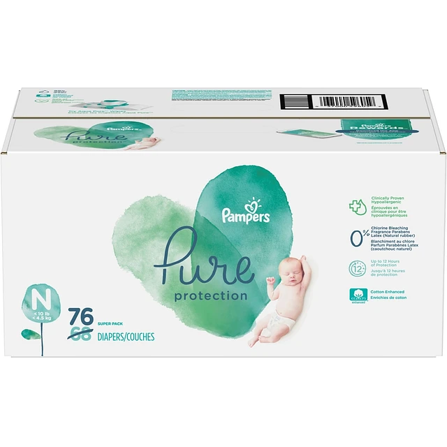 Pure Protection Newborn Diapers Size N 76 Count