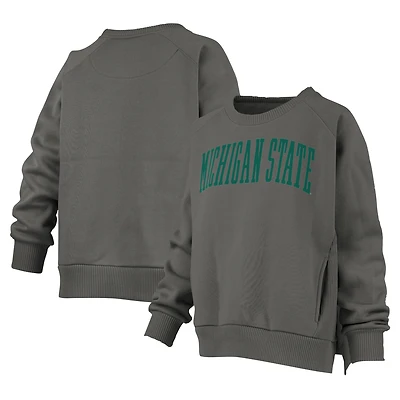 Women's Pressbox Charcoal Michigan State Spartans Pocketed Raglan Pullover Sweatshirt