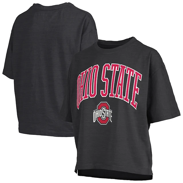 Women's Pressbox Black Ohio State Buckeyes Nelson Arch Over Logo Waist Length Oversized Slub T-Shirt
