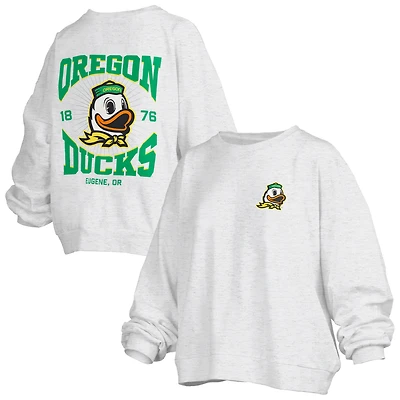 Women's Pressbox Oatmeal Oregon Ducks Waist Length Oversized Janise Melange Sweatshirt