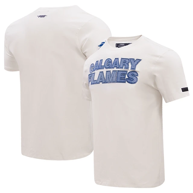 Men's Pro Standard Cream Calgary Flames Varsity Blues T-Shirt