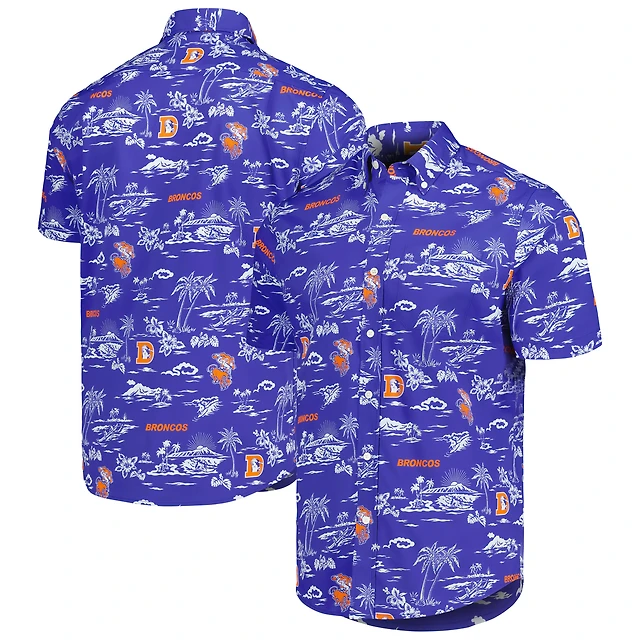 Men's Reyn Spooner Royal Denver Broncos Throwback Kekai Print Button-Up Shirt