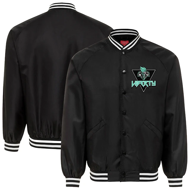 Unisex Sportiqe Black New York Liberty Rock & Roll Collection Ringo Satin Raglan Full-Snap Bomber Jacket