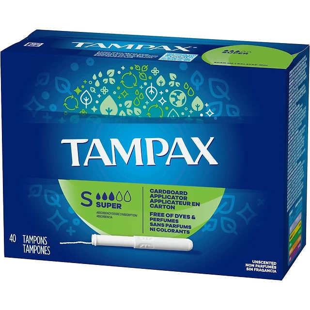 Tampax Cardboard Tampons Super Absorbency, Anti-Slip Grip, LeakGuard Skirt, Unscented, 40 Count