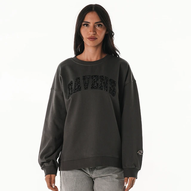 Women's The Wild Collective Charcoal Baltimore Ravens Rock Crystal Oversized Crewneck Sweatshirt