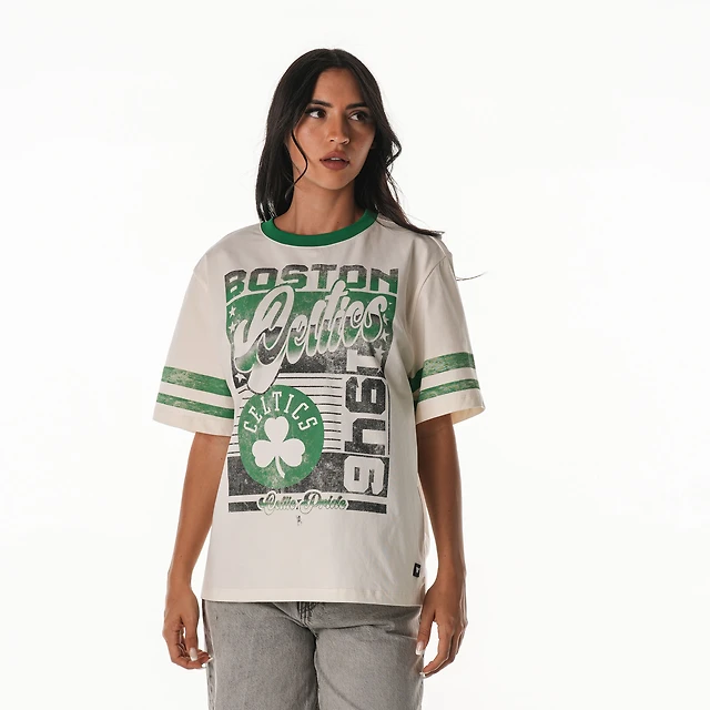 Women's The Wild Collective Cream Boston Celtics Vintage Drop Shoulder Oversized Boyfriend T-Shirt