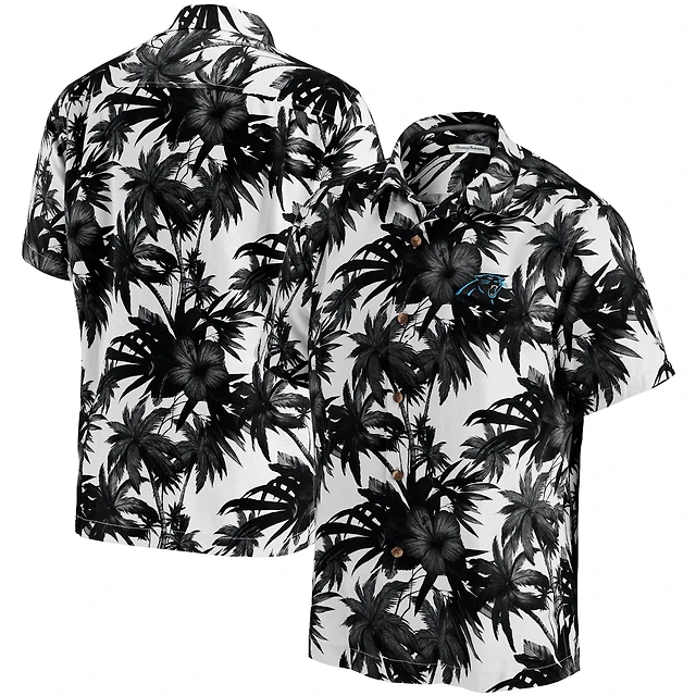 Men's Tommy Bahama Black Carolina Panthers Sport Harbor Island Hibiscus Camp Button-Up Shirt