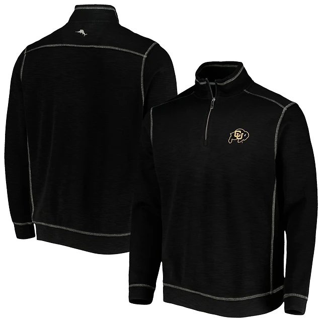 Men's Tommy Bahama Black Colorado Buffaloes Sport Tobago Bay Tri-Blend Mock Neck Half-Zip Jacket