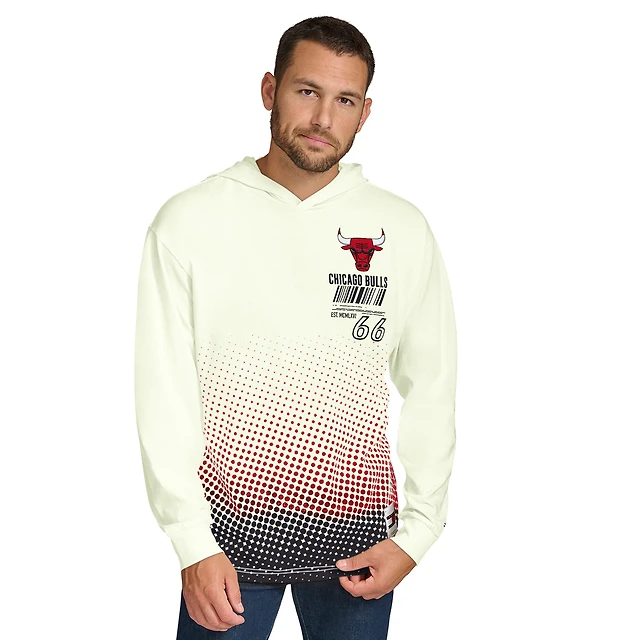 Men's Tommy Jeans Cream Chicago Bulls Ben Vintage Applique Long Sleeve Hoodie T-Shirt