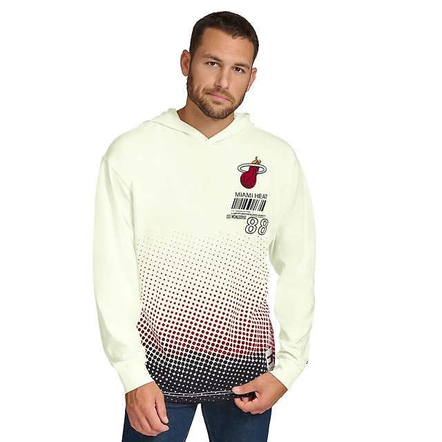 Men's Tommy Jeans Cream Miami Heat Ben Vintage Applique Long Sleeve Hoodie T-Shirt