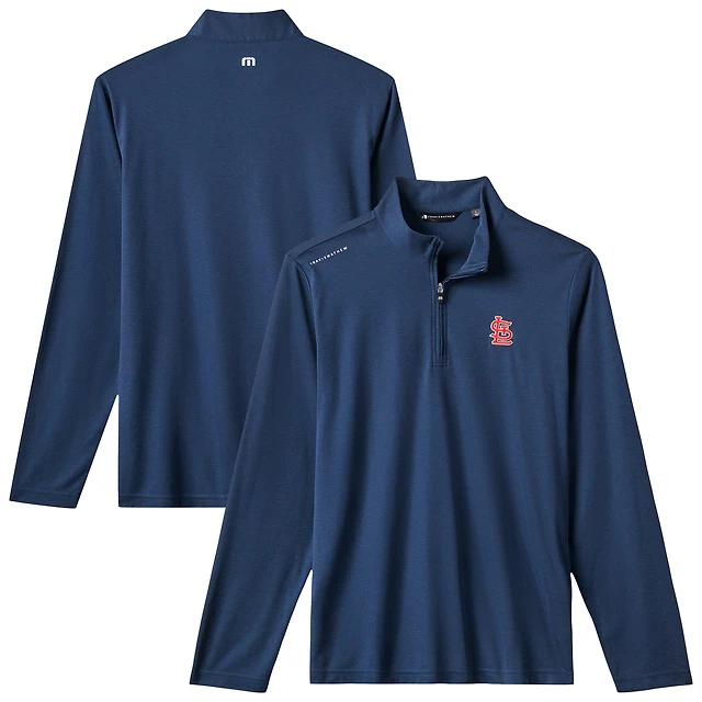 Men's TravisMathew Navy St. Louis Cardinals Time to Tailgate Tri-Blend Quarter-Zip Pullover