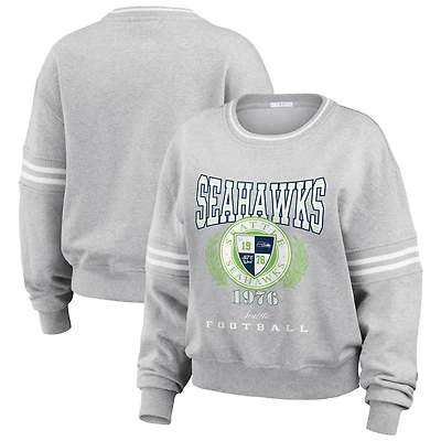 Women's WEAR by Erin Andrews Heather Gray Seattle Seahawks Crest Cropped Pullover Sweatshirt