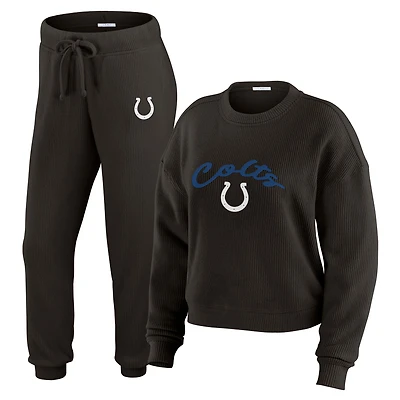 Women's WEAR by Erin Andrews Cream Indianapolis Colts Plus Knitted Tri-Blend Long Sleeve T-Shirt & Pants Lounge Set