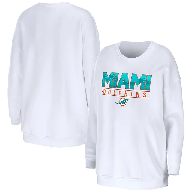 Women's WEAR by Erin Andrews White Miami Dolphins Domestic Pullover Sweatshirt
