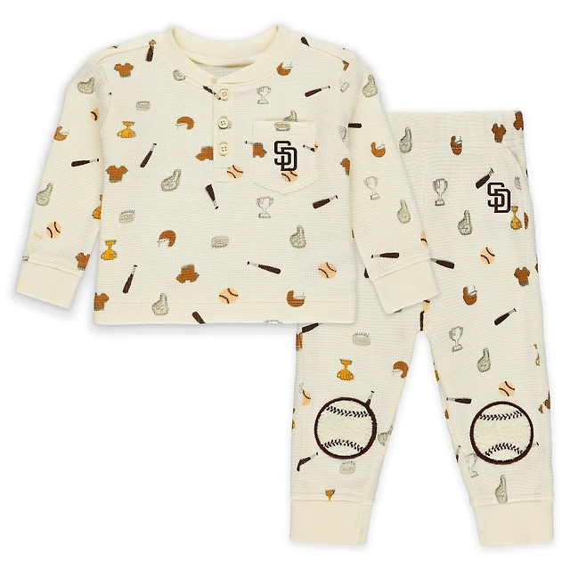 Newborn WEAR by Erin Andrews Cream San Diego Padres Two-Piece Waffle-Knit Sleep Set