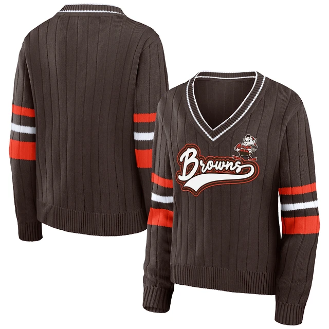 Women's WEAR by Erin Andrews Brown Cleveland Browns Throwback V-Neck Sweater