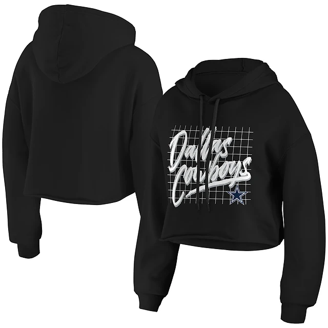 Women's WEAR by Erin Andrews Black Dallas Cowboys Domestic Cropped Pullover Hoodie