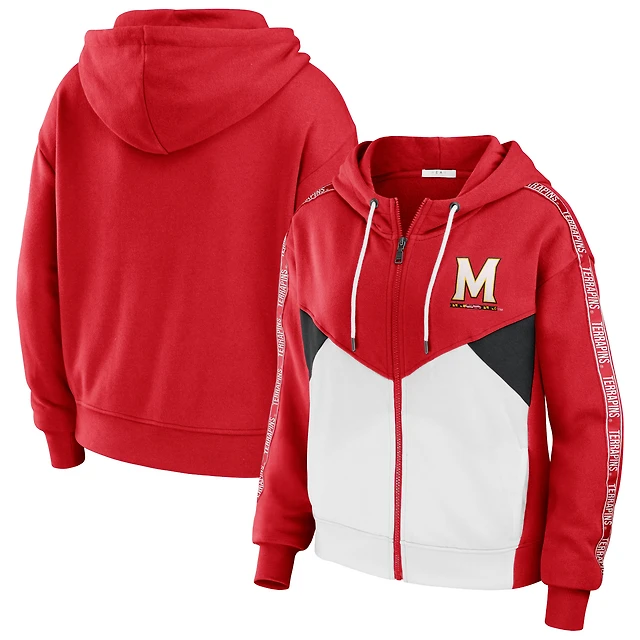 Women's WEAR by Erin Andrews Red Maryland Terrapins Colorblock Full-Zip Hoodie Jacket