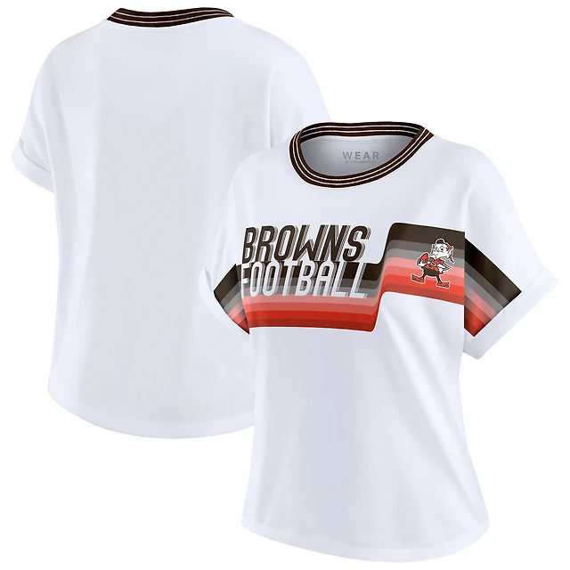 Women's WEAR by Erin Andrews White Cleveland Browns Cropped Center Stripe Dolman T-Shirt