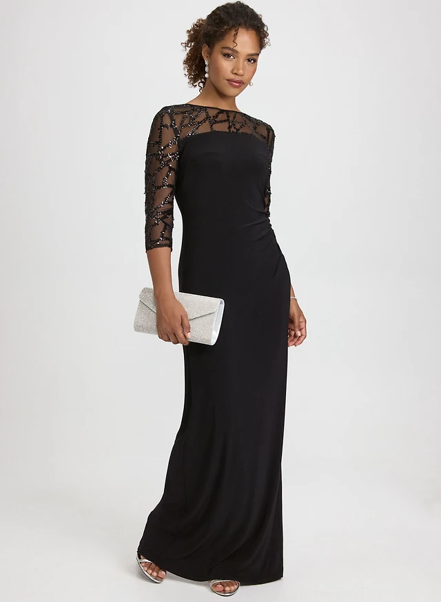 Sequin Detail Satin Gown