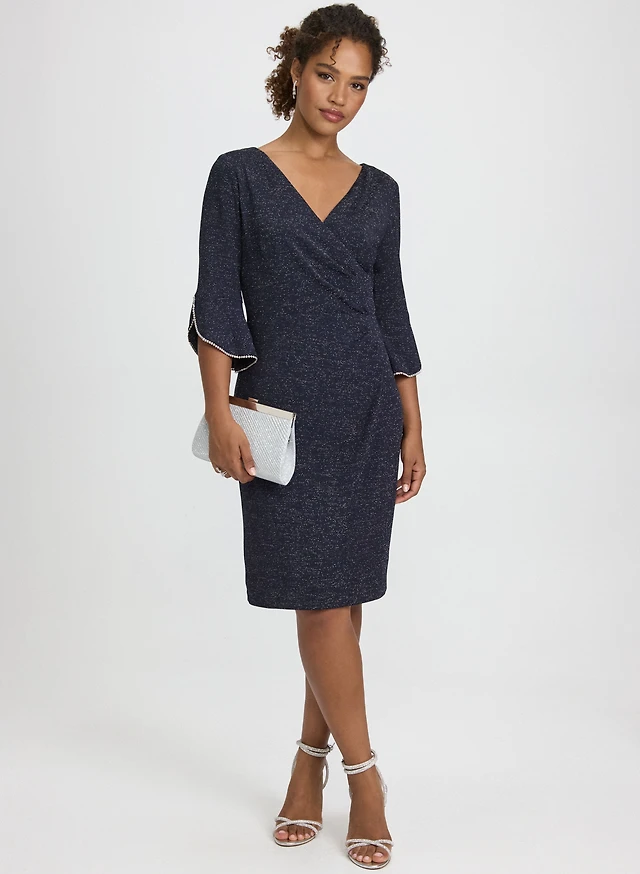 Twist-Front Glitter Knit Dress