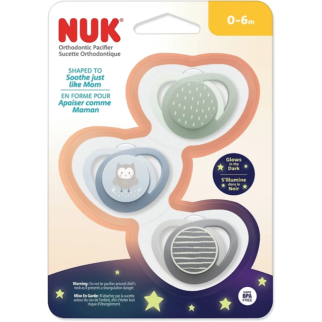 NUK Orthodontic Pacifier, 0-6 months, Blue Owl, 3 Pack