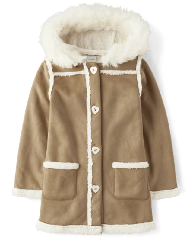 Girls Heart Faux Fur Coat