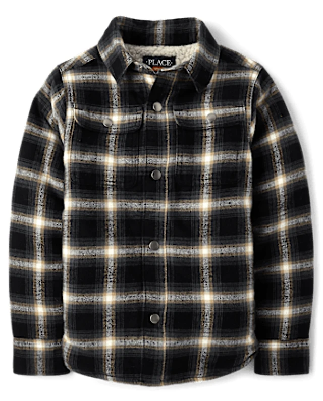 Boys Plaid Sherpa Lined Shacket