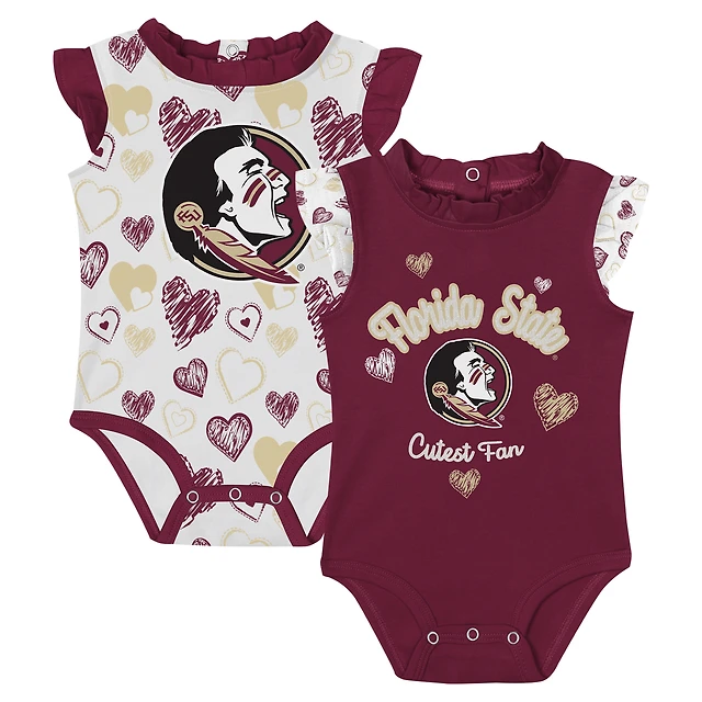 Girls Newborn Garnet Florida State Seminoles Happy Hearts 2-Pack Bodysuit Set