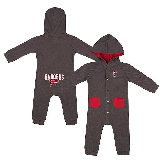 Newborn & Infant Colosseum Charcoal Wisconsin Badgers Zando-Zan Waffle Full-Snap Hooded Romper