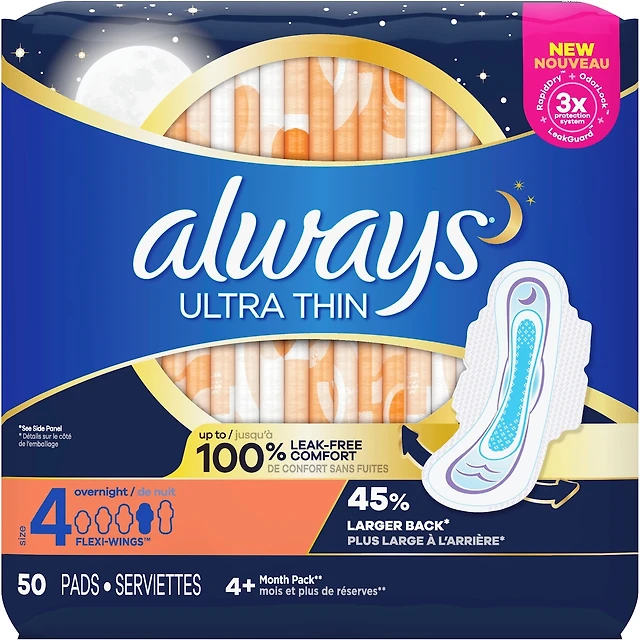 Ultra Thin Overnight Pads with Flexi-Wings, Size 4, Overnight, Unscented