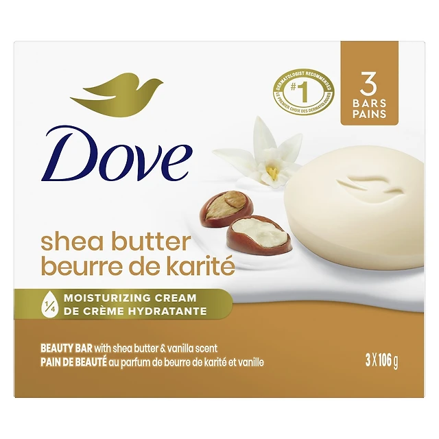 Dove Beauty Bar more moisturizing than bar soap Shea Butter for soft and pampered skin 106 g 6 count