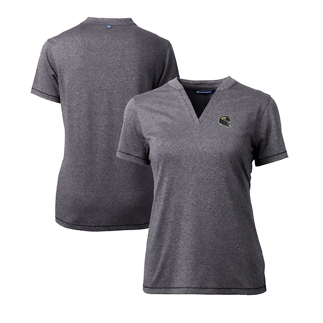 Women's Cutter & Buck Heather Charcoal Jacksonville Jaguars Helmet Logo DryTec Forge Stretch V-Neck Blade Top