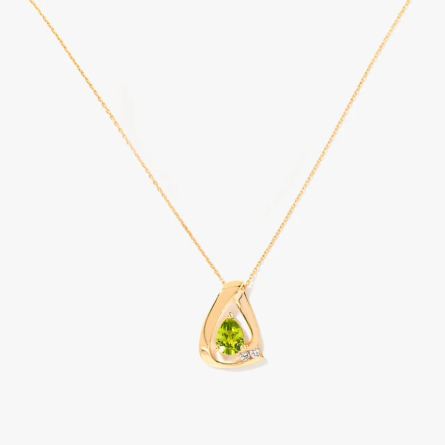Pear Shaped Peridot Necklace in 10K Yellow and White Gold