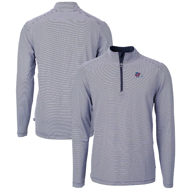 Men's Cutter & Buck Navy/White West Virginia Mountaineers Big Tall Virtue Eco Pique Micro Stripe Recycled Quarter-Zip Pullover Top