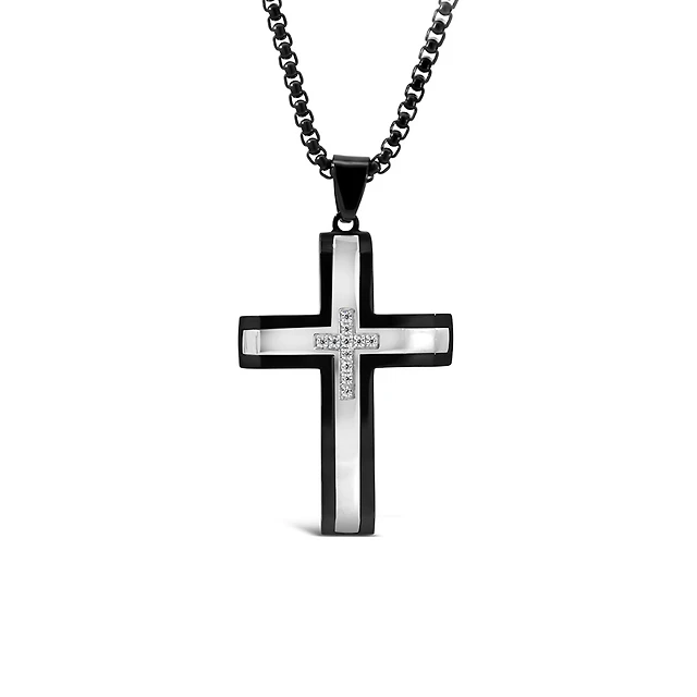 Cross Pendant with Cubic Zirconia in Stainless Steel with Chain