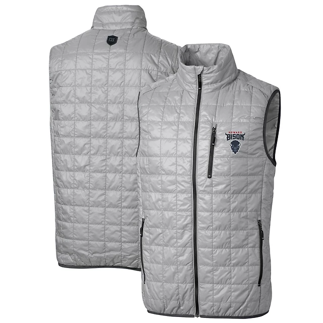 Men's Cutter & Buck Gray Wyoming Cowboys Big Tall Rainier PrimaLoft Eco Full-Zip Puffer Vest