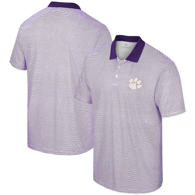 Men's Colosseum Purple/White Clemson Tigers Print Stripe Polo