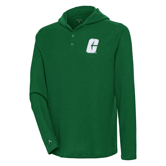 Men's Antigua Green Charlotte 49ers Strong Hold Long Sleeve Henley Hoodie T-Shirt