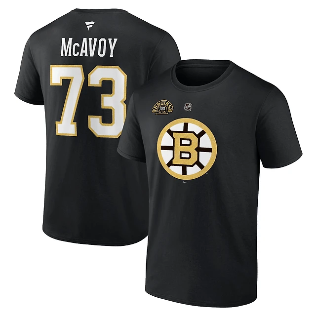 Men's Fanatics Charlie McAvoy Black Boston Bruins Authentic Stack Name & Number T-Shirt